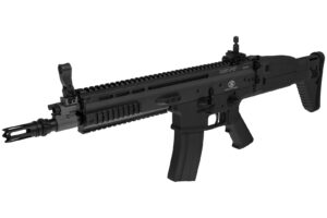 En af vores mest populære modeller med praktisk foldekolbe og fuldt railsystem hvor der kan af- og påmonteres de medfølgende dele som: rødpunktssigte, lygte og lyddæmper