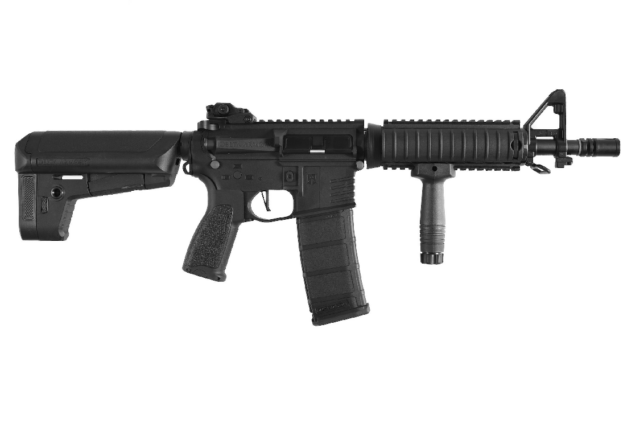 Pakken indeholder alt, hvad du behøver for at komme i gang: våben, mid-cap magasin med 120 skuds kapacitet, batteri, oplader med auto-stop og to RIS covers for bedre greb.