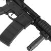 Våbnets krop er lavet i robust ABS-polymer, der er langt mere holdbart end almindelig plastik, mens den metalforstærkede ydre løb og 22 mm RIS-skinne giver mulighed for montering af alt fra sigter til lyddæmpere. Komforten er også i fokus med en ergonomisk kolbe, der har plads til større batterier, og metal sling mounts på begge sider gør det nemt at montere slynge.