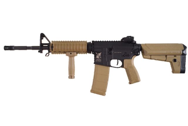 Delta Armory Charlie-serien er en ny generation af AR15 airsoftvåben, der kombinerer høj kvalitet, pålidelighed og moderne funktioner – alt sammen til en overkommelig pris. Denne Half Tan-model skiller sig visuelt ud med en taktisk ørkenfarvet finish, som både ser skarp ud og passer perfekt til skov- og urban-miljøer.