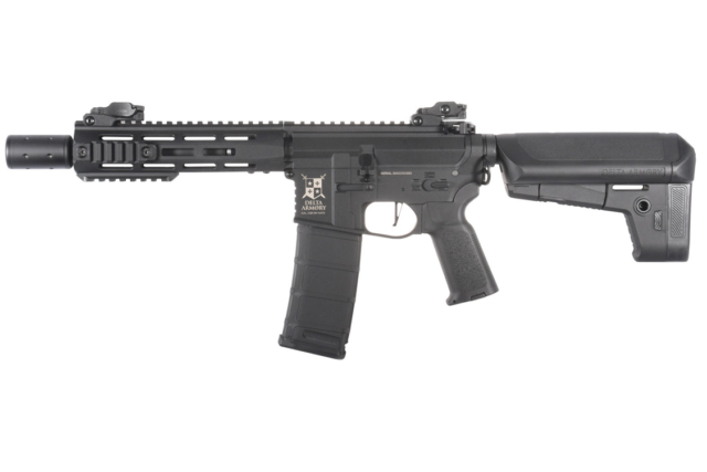 Våbnet leveres med justérbare for- og bagsigter, som er monteret direkte på RIS-skinnen. Løbet har et 14 mm CCW venstregevind, så du nemt kan montere lyddæmper eller andet tilbehør.