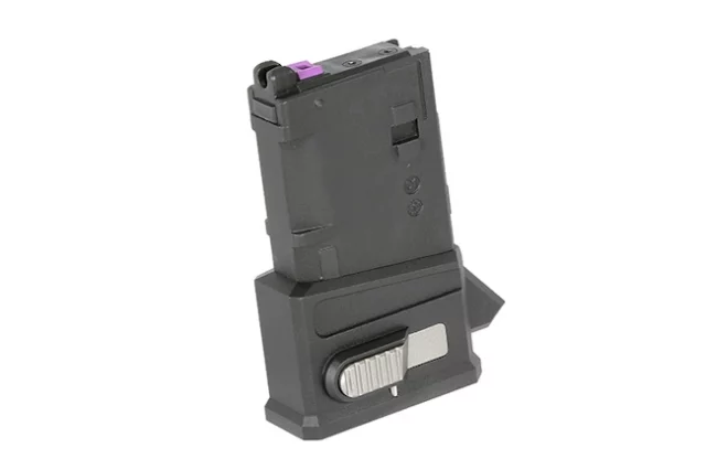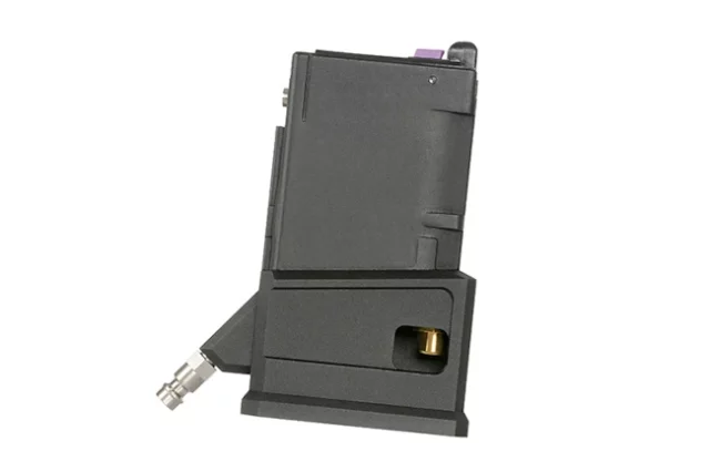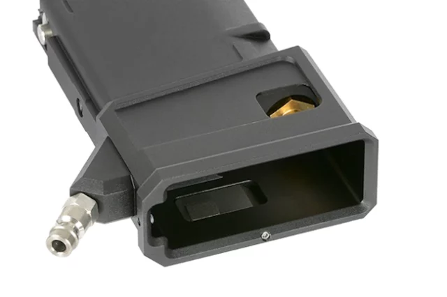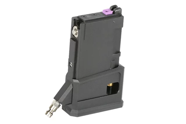 Med adapteren kan du konvertere din gasdrevne riffel til et HPA-system og bruge almindelige AEG M4/AR-15 magasiner. Det giver flere fordele: