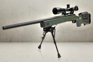 McMillan M40A3 er en fuldt licenseret bolt action manuel sniper riffel fra ASG her i en bundle med et lækkert 3-9×50 ASG Scope og Metal Bipod.