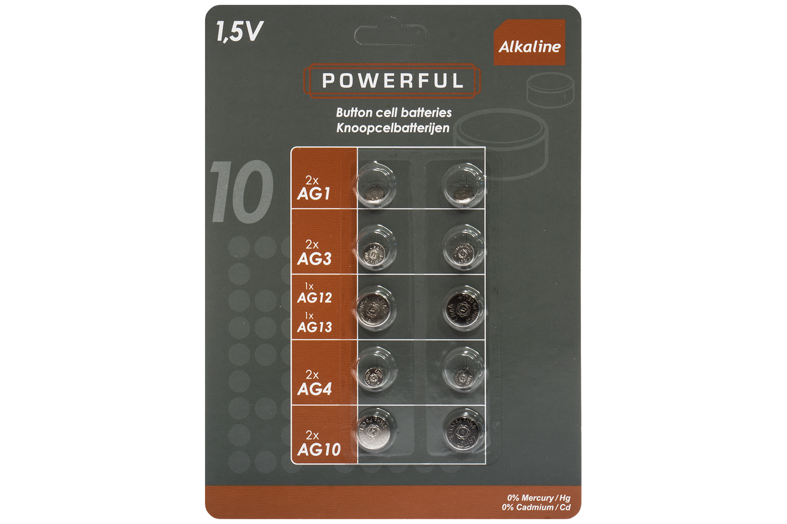 Pakke med 2 sæt af 5 forskellige knapceller.