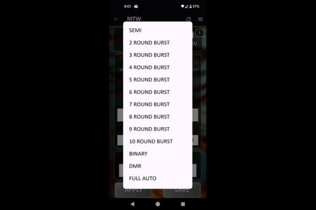 Vælg frit mellem semi, burst, full-auto, DMR eller binary mode og juster Rate of Fire fra 1 til 50 RPS. Du kan gemme profiler og hurtigt skifte mellem dem under spil.