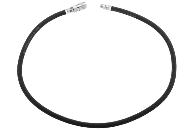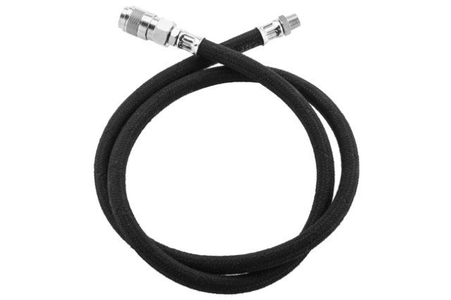Den medfølgende HPA line er en forstærket US version med en længde på cirka 90 cm. Slangen er designet til fast montering og skrues direkte i regulatoren via NPT 1/8-27 fitting. Monteringen udføres med teflon og giver en tæt og stabil forbindelse.