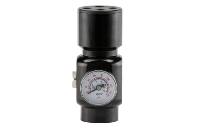 Trykjusteringen er præcis og kan låses, så indstillingerne ikke ændres under spil. En rupture disk på 3000 PSI giver ekstra sikkerhed. Regulatoren fungerer stabilt i temperaturer fra minus 5 til 65 grader.