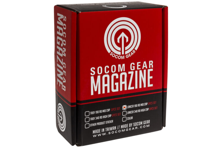 Pakke med 5 stk mid-cap magasiner til m4/m15/m16 serien med plads til hele 190 kugler fra Socom Gear.