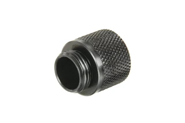 Aluminiumsadapter med 14 mm CCW-gængning til airsoft. Monteres i pistolløb med 11 mm negativ indvendig gængning og gør det muligt at sætte lyddæmpere, tracere eller andet 14 mm CCW-tilbehør på pistolen.