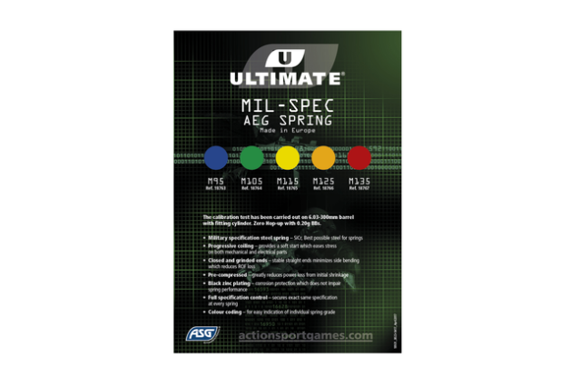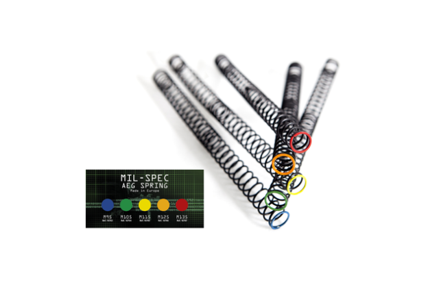 M115 er en populær fjederklasse til mange AEG-opsætninger, hvor du ønsker et tydeligt, men kontrolleret løft. Den præcise udgangshastighed afhænger altid af resten af din opsætning. Lufttæthed, cylinder, stempel, dyse og hop-up spiller alle ind. Derfor er det en god idé at måle med en kronograf efter montering. Så ved du, hvor du ender, og du kan holde dig inden for banens grænser.