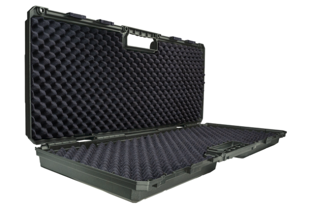 Indvendigt finder du bølgeformet skum på begge sider. Skummet fastholder riflen sikkert under transport. Det dæmper stød og reducerer bevægelse. Riflen ligger stabilt, selv på ujævnt terræn. Skummet tilpasser sig uden behov for justering.