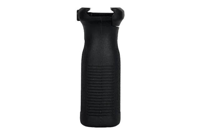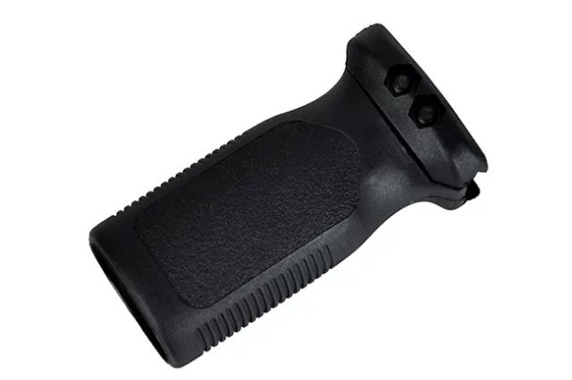 Vertikalt greb i robust polymer til montering på standard 20 mm rails. Grebet er designet til rifler og SMG’er og giver et solidt, ergonomisk håndtag, som gør det lettere at manøvrere våbnet under bevægelse. Den matte sorte overflade reducerer refleksioner og sikrer et diskret, taktisk udseende.