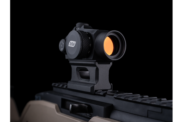 RDATS-01 leveres med en solid høj Picatinny-montering, som sidder på fra start. Den høje montering passer godt til mange rifler og airsoft-replikaer, hvor du vil have en behagelig hovedstilling. Der følger også en lav Picatinny-montering med, hvis du vil have en mere lavprofil opsætning. Det er praktisk, hvis du vil matche en bestemt kindstøtte, eller hvis din platform kræver en lavere sigtelinje.