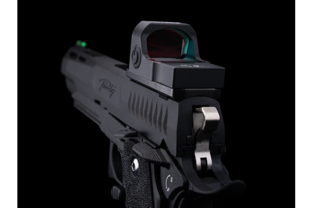 Det parallax-fri design hjælper med at holde prikken mere tro mod dit sigtepunkt. Det betyder, at du typisk oplever et mere ensartet sigtebillede, selv hvis din øjenposition ikke er helt identisk fra gang til gang. Det er især rart på en pistol, hvor greb og vinkel kan variere lidt under bevægelse.