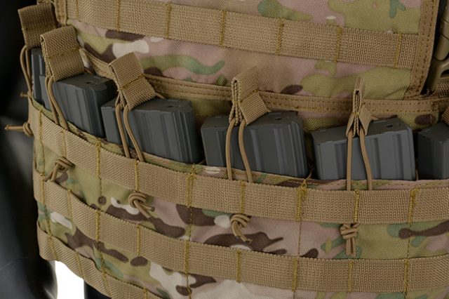 Chest riggen kan bære op til otte M4, M16 eller AR-15 magasiner. Magasinerne er placeret, så de er nemme at trække, selv under bevægelse. Det giver dig mulighed for hurtig genladning uden at miste fokus. Ud over magasiner er der plads til andet essentielt udstyr som radio, multitool eller ekstra lommer monteret via MOLLE.