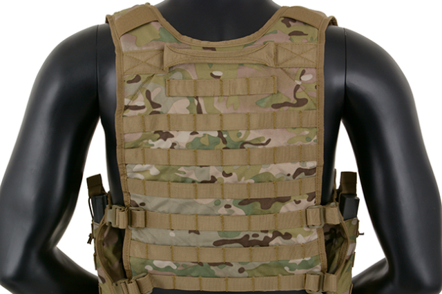Rifleman chest riggen er udstyret med MOLLE og PALS webbing på begge sider. Det giver dig mulighed for at tilpasse vesten præcist efter din rolle og spillestil. Du kan nemt tilføje ekstra lommer, utility pouches eller andet kompatibelt taktisk udstyr. Multicam-mønstret fortsætter over hele vesten, så ekstra tilbehør nemt kan matches visuelt.