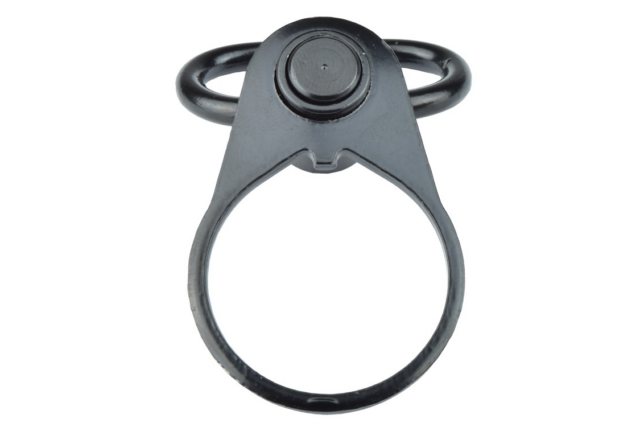 Robust end plate til M4 buffer tube, udstyret med QD-fatning og medfølgende stål sling swivel. Perfekt til montering af slynge.