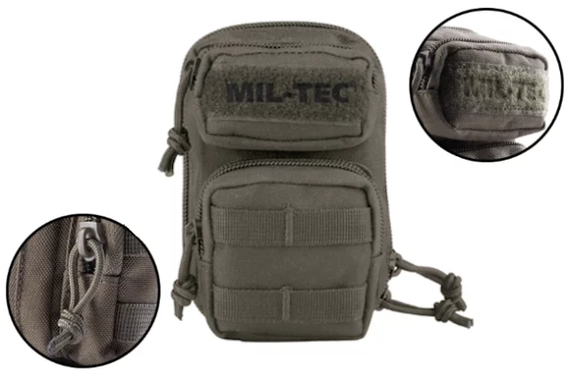Den lille taske har tre separate rum med lynlås, ideelle til nøgler, mønter eller andre småting, du vil have styr på. På forsiden findes et hook-and-loop panel med Mil-Tec-logo, som fuldender det taktiske look.