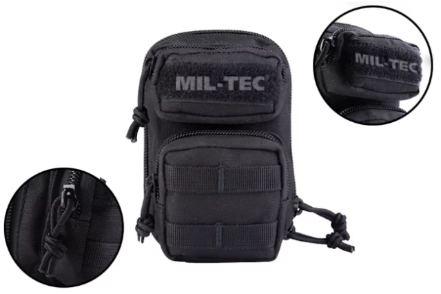Tasken har tre små lynlåslommer, ideelle til nøgler, mønter eller andre småting. Fronten har et velcropanel med Mil-Tec-logo, som giver et rent og taktisk udtryk.