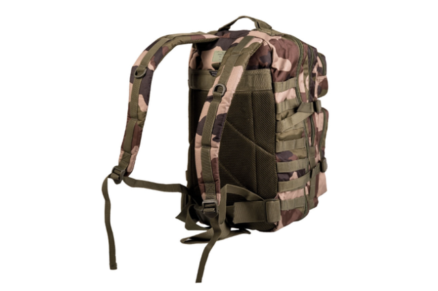 US Assault Pack Large har to store hovedrum med masser af plads til udstyr, beklædning og grej. De indvendige netlommer og lynlåslommer gør det nemt at organisere indholdet og holde overblik. Frontlommen er udstyret med en praktisk organizer, som er ideel til mindre genstande som værktøj, batterier eller personlige effekter. Derudover findes et ekstra lynlåsrum på fronten, som giver hurtig adgang til ofte brugt udstyr. Alle rum er udstyret med tovejs lynlåse, så tasken er nem at åbne fra flere sider.