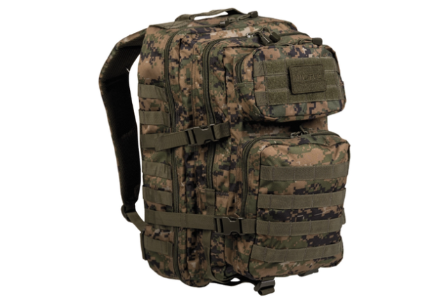 US Assault Pack Large Digital W/L er udstyret med to store hovedrum, der giver rigelig plads til udstyr, tøj og grej. De indvendige lynlåsrum og netlommer gør det let at organisere indholdet, så du hurtigt finder det, du skal bruge. Frontlommen har en integreret organizer, som er ideel til mindre genstande som værktøj, batterier og personlige effekter. Derudover er der et ekstra lynlåsrum på fronten, som giver hurtig adgang til ofte brugt udstyr. Alle rum er udstyret med tovejs lynlåse, der gør adgangen fleksibel og nem.