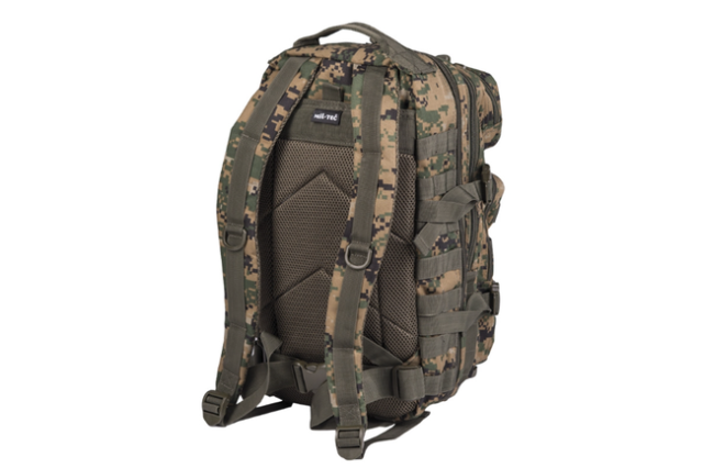 US Assault Pack Medium Digital W/L har to store hovedrum med rigelig plads til udstyr, beklædning eller grej. Indvendigt finder du flere lynlåslommer og netlommer, som gør det let at holde orden og finde dit udstyr hurtigt. Frontlommen er udstyret med en integreret organizer, som er ideel til mindre genstande som værktøj, batterier eller personlige effekter. Et ekstra lynlåsrum på fronten giver hurtig adgang til ofte brugte ting. Alle rum er udstyret med tovejs lynlåse, så du nemt kan åbne tasken fra flere vinkler.