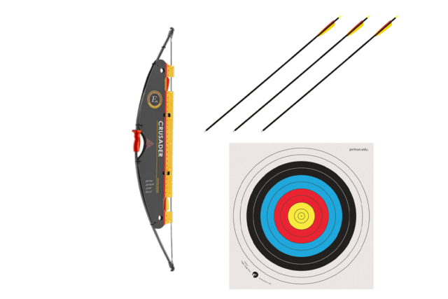 Sættet indeholder 3 stk. 28” glasfiberpile og hele 10 pap-skydeskiver i størrelsen 60×60 cm – ideelt til både individuel øvelse og sjove konkurrencer med vennerne.
