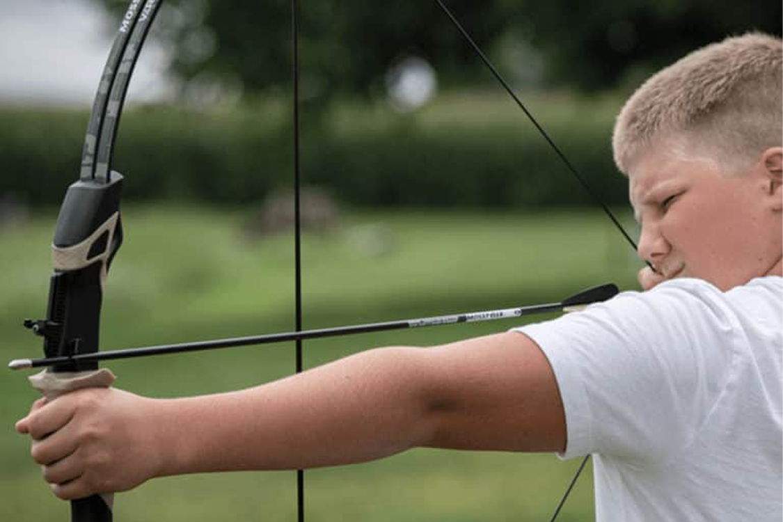 En compound bue er meget behagelig og nem at skyde med – Træk i streng til den slapper af, tag sigte og affyr!
