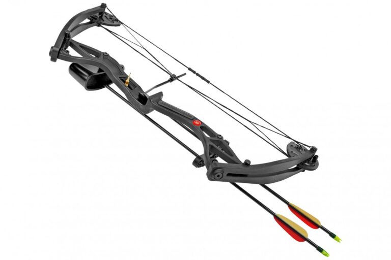 Kompakt glasfiber compoundbue i topkvalitet fra Crosman i USA. Her leveret som flot kompletsæt.