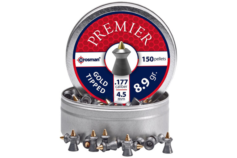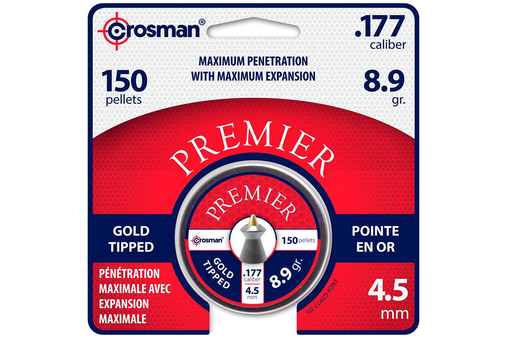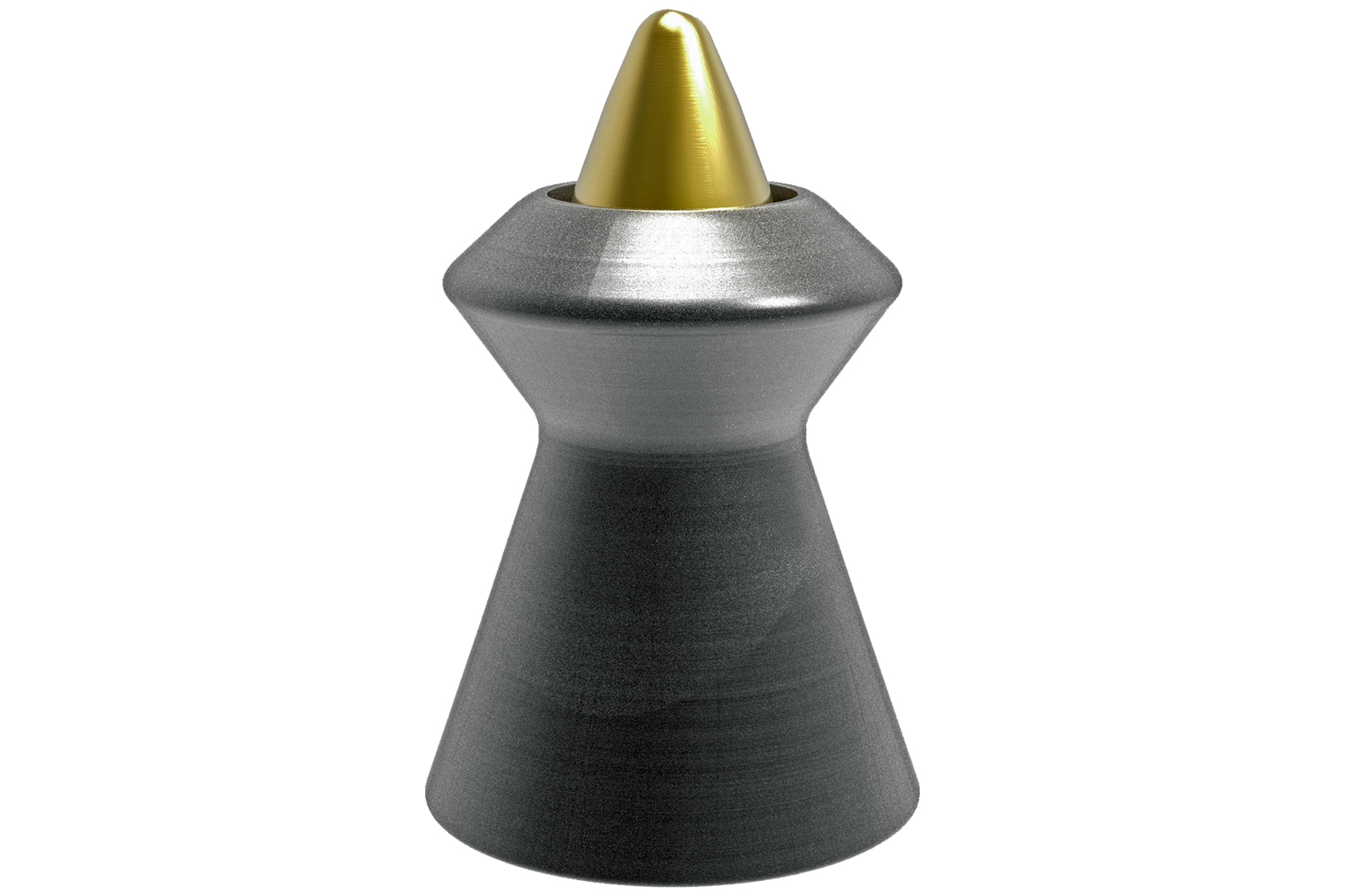 Æske med 150 stk high grade gold tipped hagl med høj gennemslags kraft og maximal deformering.