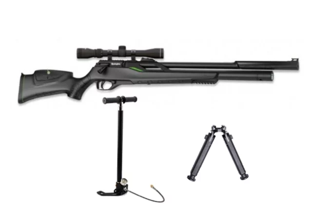 Oplev højtydende skydning med vores fuldkomponerede bundle, der kombinerer en præcisionsluftgevær, pålidelig støtte og uafhængig tankning – alt, hvad du behøver for seriøs træning eller konkurrence.