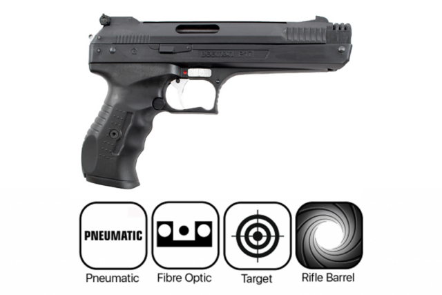 Beeman 2004E er en pneumatisk luftpistol med enkelt slag og et overhåndtag. Den har åbne sigtemidler, hvor du kan justere bagkikkerten, så den passer præcist til dig.