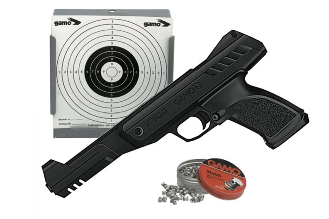 Sættet leveres med 10-skuds magasin, 250 Gamo rundhagl og praktisk pistolkuffert i plast – lige klar til brug