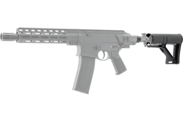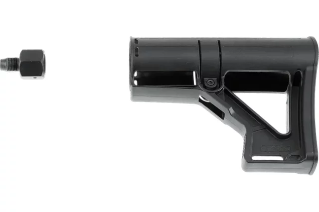 Sættet indeholder en gevindadapter og en polymer skulderstøtte, som gør det muligt at fastgøre flasken direkte til riflen.