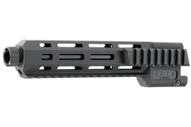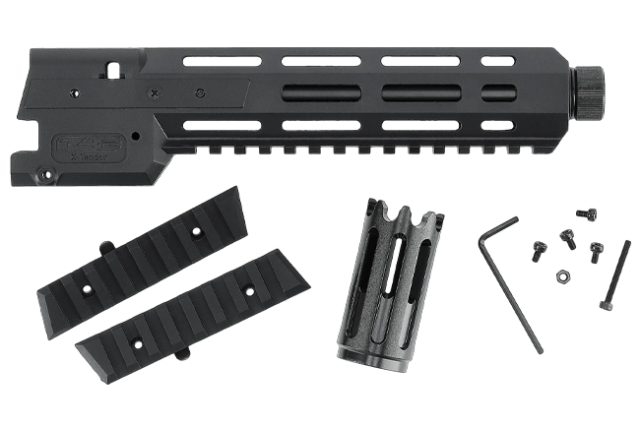 X-Tenderen er udstyret med tre Picatinny-skinner og M-LOK-slots, så du nemt kan montere universelt tilbehør som lys, sigtemidler eller greb.